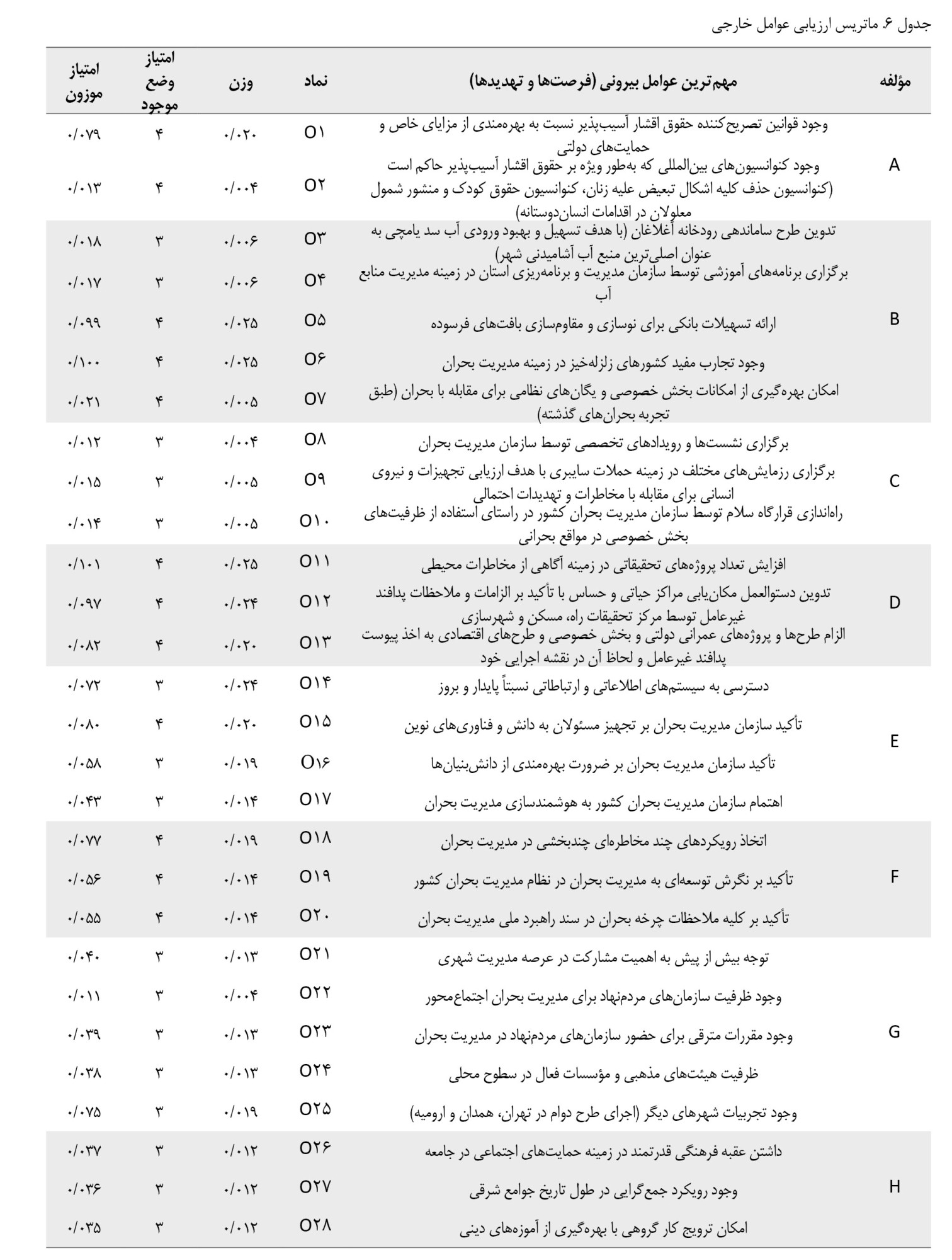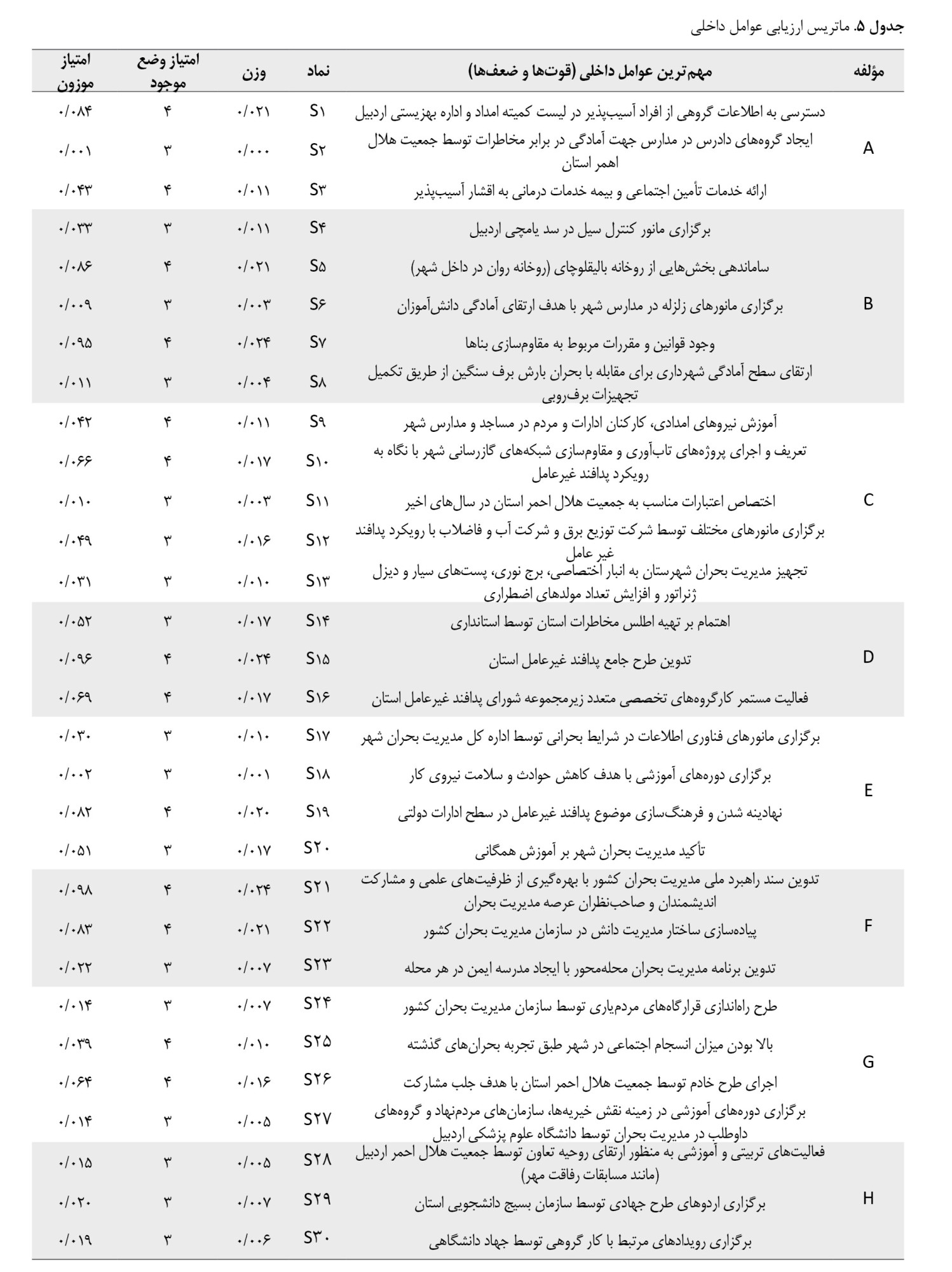 بررسی و تحلیل عوامل داخلی و خارجی سیستم مدیریت بحران اجتماعمحور شهر اردبیل