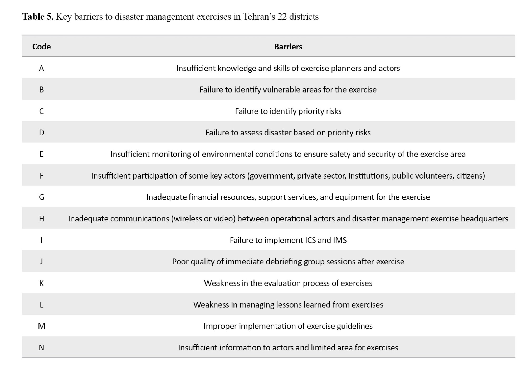 Considering the identified barriers to disaster management exercises in Tehran’s 22 districts, following recommendations are provided: