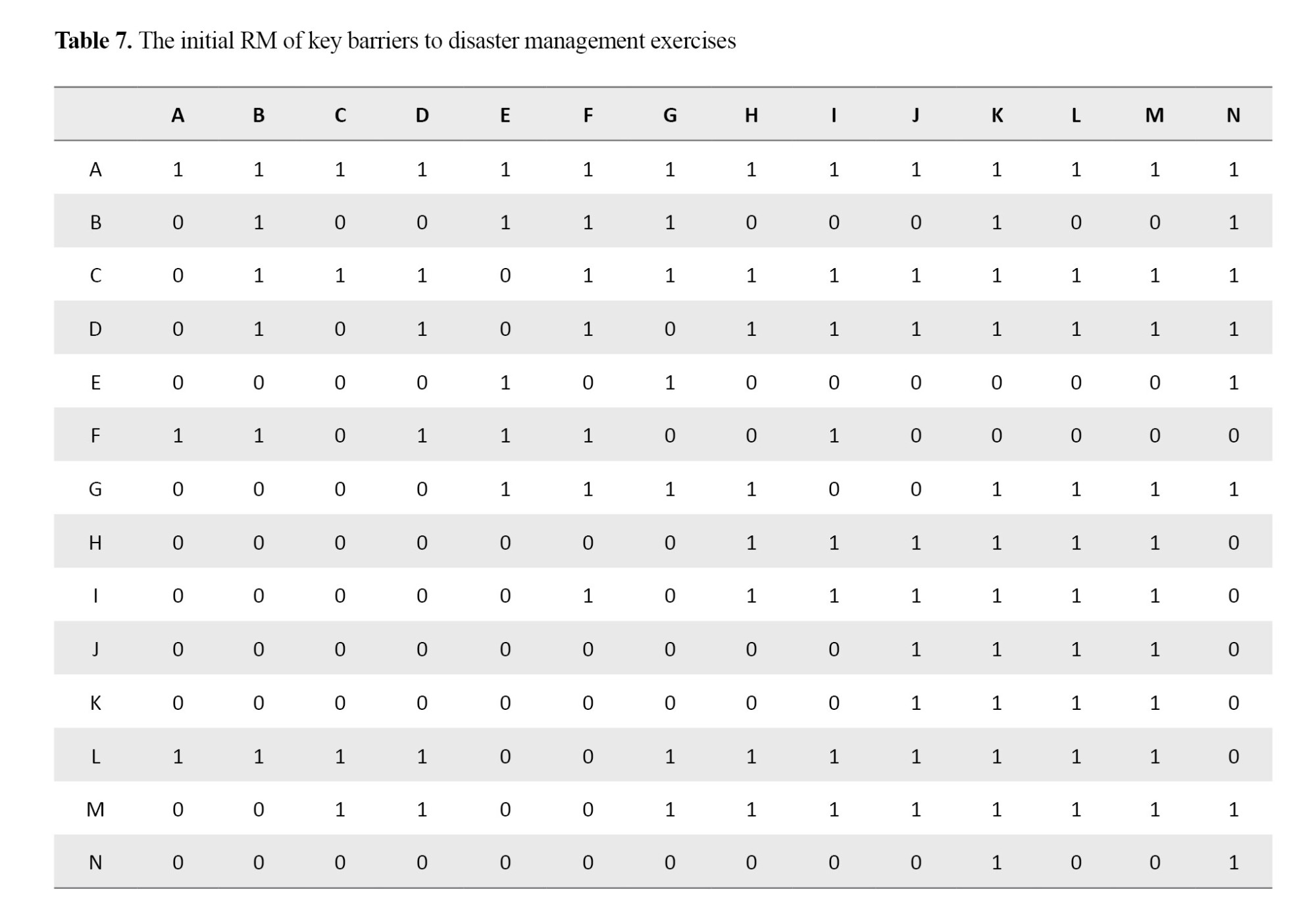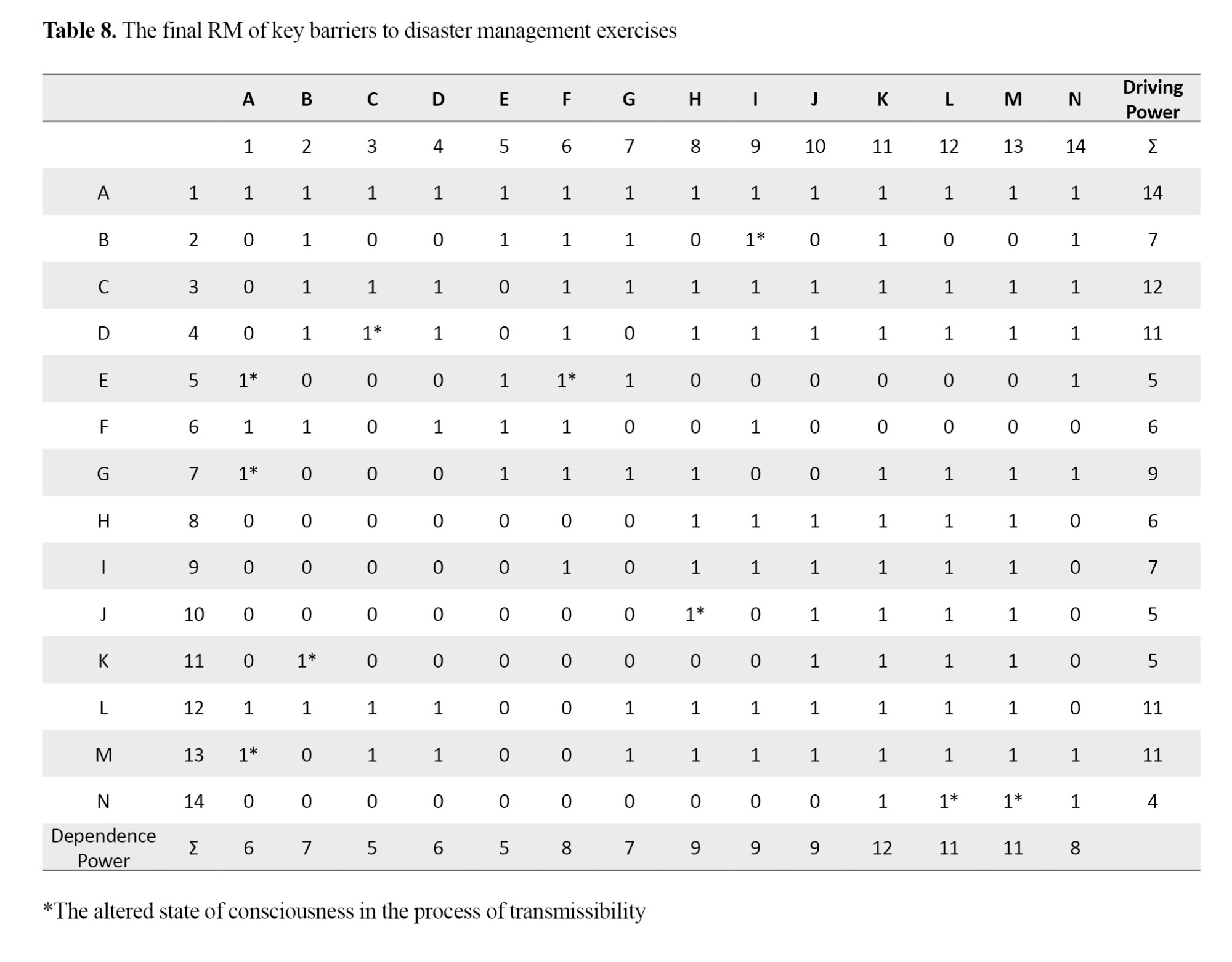 Then, by including the transitivity of variable relations, the final RM was formed (Table 8).