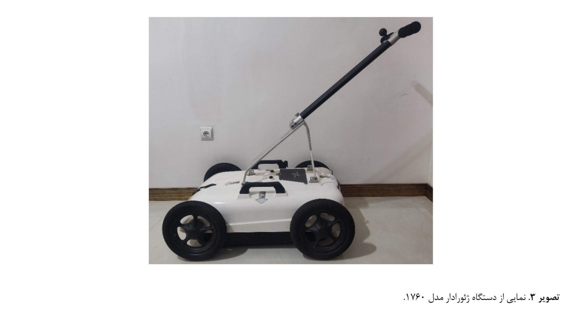 در این مطالعه با استفاده از یک دستگاه ژئورادار مدل 1760 (ساخت شرکت ایمپالس رادار کشور سوئد) اقدام به دادهبرداری در بخشهای تعیینشده در محدودههای مورد نظر گردید. این مدل دارای 2 آنتن با فرکانسهای 170 و 600 مگاهرتز میباشد. دادههای برداشتشده با این ابزار، با قدرت تفکیک بالا امکان شناسایی لایهها، حفرات و شکستگیهای نزدیک به سطح (کمتر از 12 متر) را در اختیار ما قرار میدهد (گودمن و پیرو، 2013). تصویر شماره 3 تصویر ژئورادار بهکاربردهشده را نشان میدهد.
