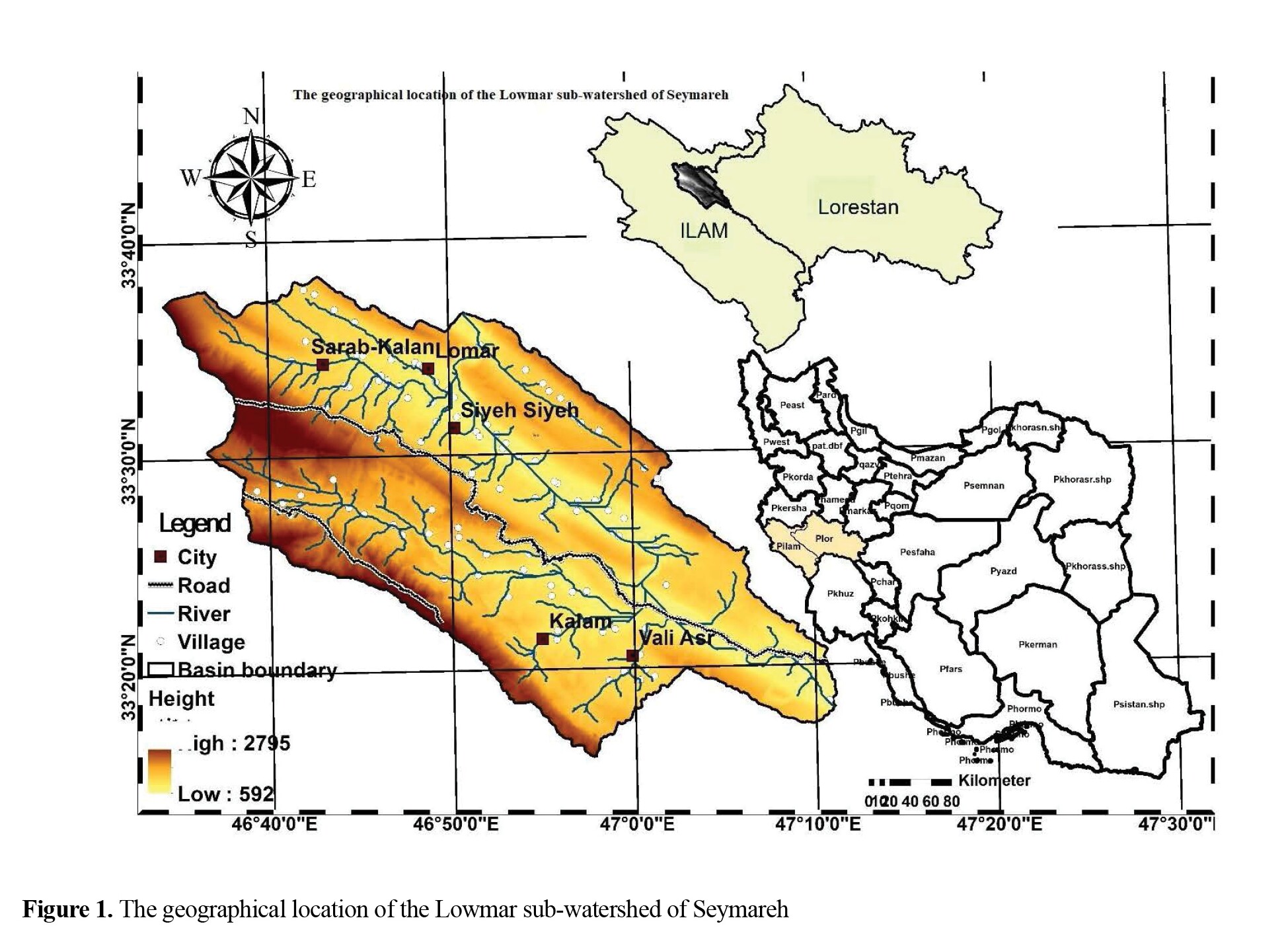 The Seymareh watershed is one of the headwaters of the Karkheh River, located in the southwest of Iran and in the Zagros Mountain Range. Among the important areas in this region are the towns of Valiasr, Lowmar, and Kolm. The study area, with an area of 1131 km2, is part of the Seymareh watershed, which starts from the confluence of the Seymareh and Cherdavel rivers in the north of Lowmar town in Ilam province and ends in the south at the Seymareh Dam (Figure 1). The long-term average annual rainfall and temperature at Lowmar station are 412.8 mm and 20.9 °C, respectively.
