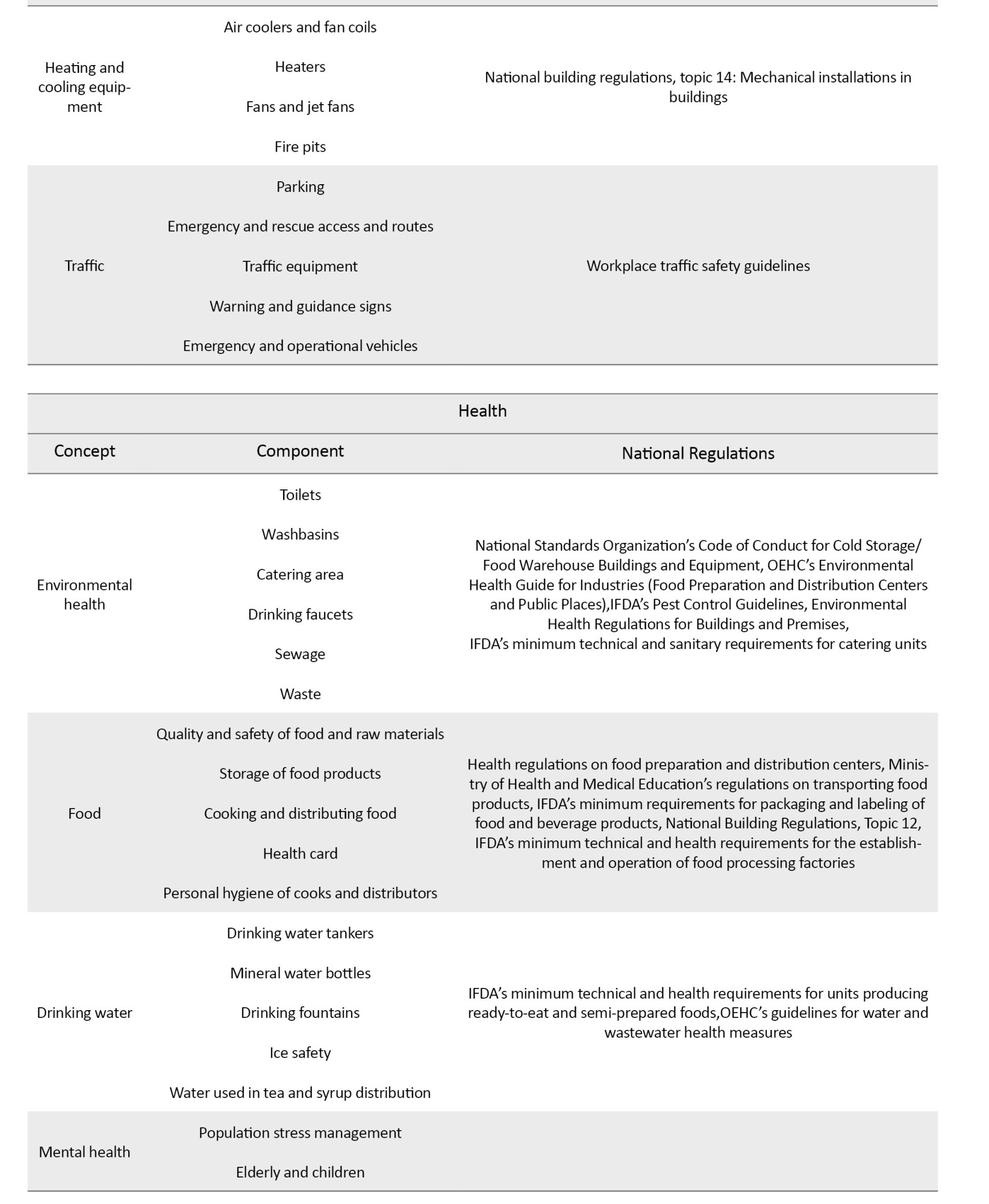 The final items were organized into three dimensions of health, safety, and environment and designed as an operational tool. For each item, the legal requirements and related upstream documents were included in a separate column, allowing users to cite and implement. This checklist was tailored to the specific conditions of Tehran and the needs of urban management.