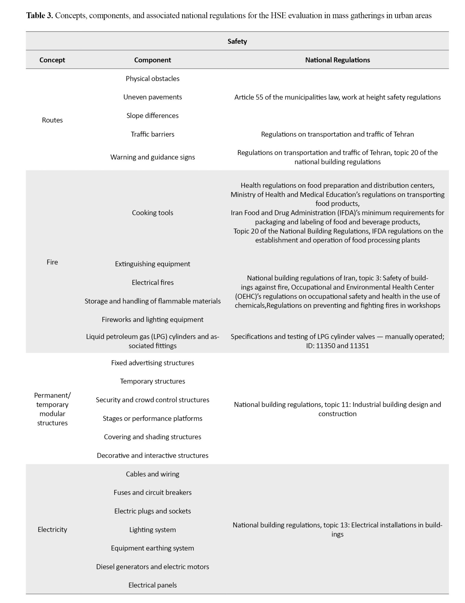 Despite these studies, the lack of a comprehensive, structured, and operational tool for evaluating HSE performance in mass gatherings, especially in urban settings, remains a serious research gap. Most of the existing models either partially address one of the HSE dimensions or are designed for industrial and non-urban environments and are not capable of adapting to the real conditions of urban events. Aiming to fill this gap, the present study seeks to design an HSE evaluation checklist for mass gatherings that covers the three main dimensions of health, safety, and environment in an integrated and practical manner.